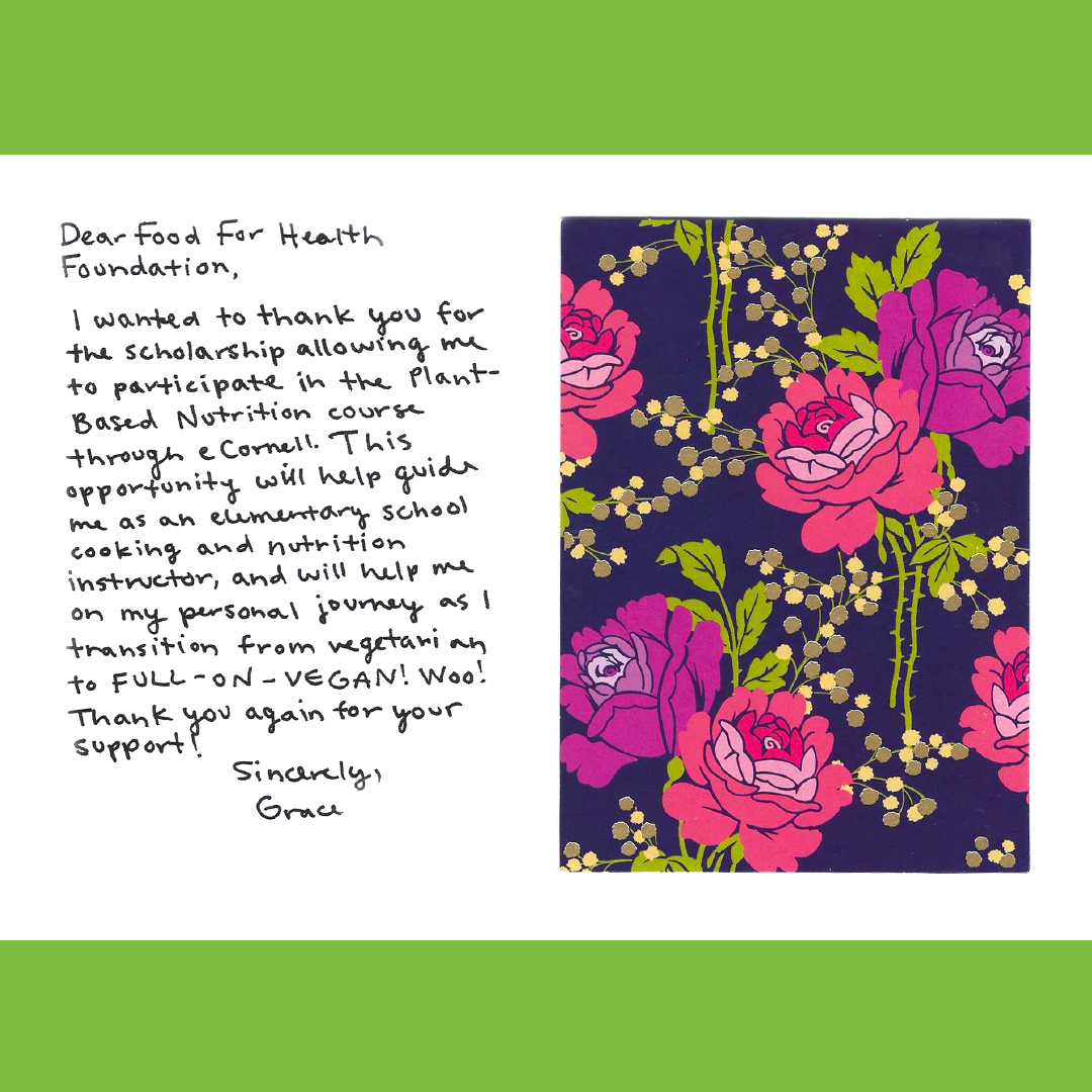 The Food for Health Foundation provides full scholarships for the T. Colin Campbell Center for Nutrition Studies Plant-Based Nutrition Certificate Program.